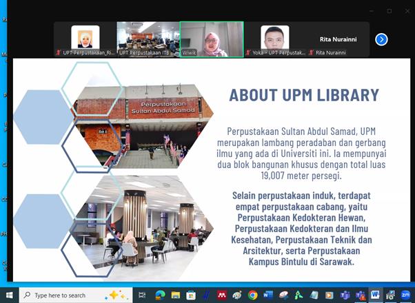 Pertemuan ini merupakan bagian dari upaya berkelanjutan UPT Perpustakaan dalam meningkatkan kapasitas sumber daya manusia pengelola perpustakaan di lingkungan ITB. Tiga narasumber yang diundang adalah Wiwik Istiyarini, S.Sos, M.M. (Pustakawan Ahli Madya dari Sekolah Bisnis dan Manajemen ITB), Dwina F. Shidiq, M.IKom (Direktur American Corner ITB), dan Yoka Adam Nugrahaa, S.Sos (Kepala Bidang Layanan Pemustaka dan Literasi Ilmiah UPT Perpustakaan ITB).