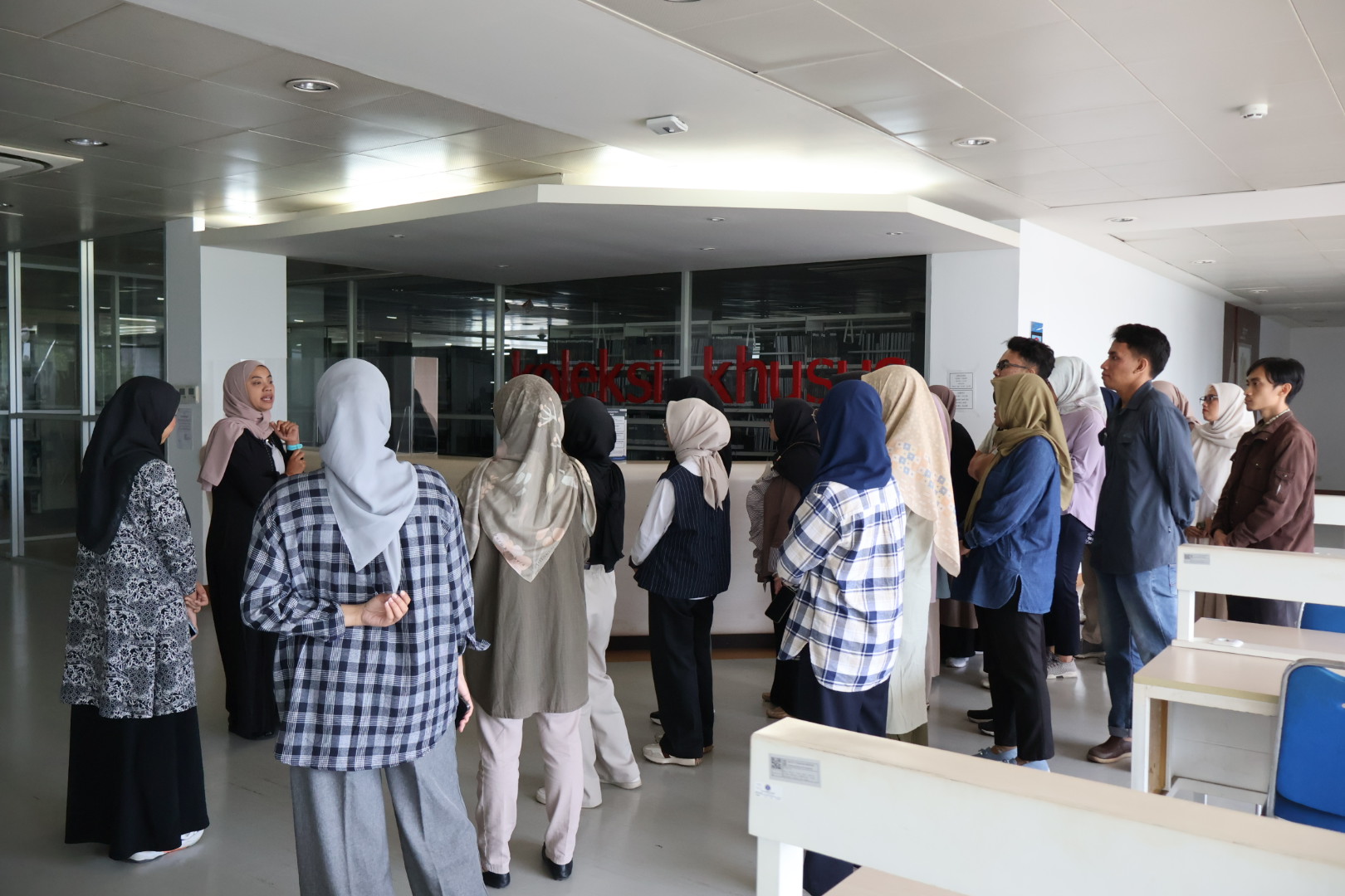 Pada kegiatan ini staf UPT Perpustakaan membawa peserta kegiatan pembekalan berkeliling gedung perpustakaan yang diawali dengan memperkenalkan setiap ruang layanan yang ada di perpustakaan mulai dari Lantai 1 hingga ke Lantai 4 Gedung Perpustakaan, serta dijelaskan berbagai koleksi dan layanan yang ada di setiap lantai dan bagaimana cara memanfaatkannya.