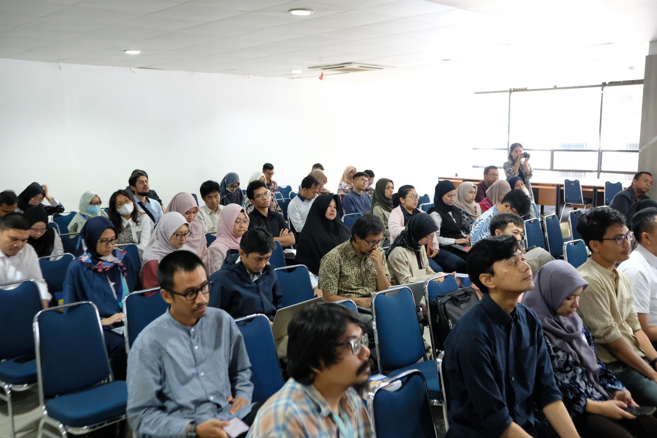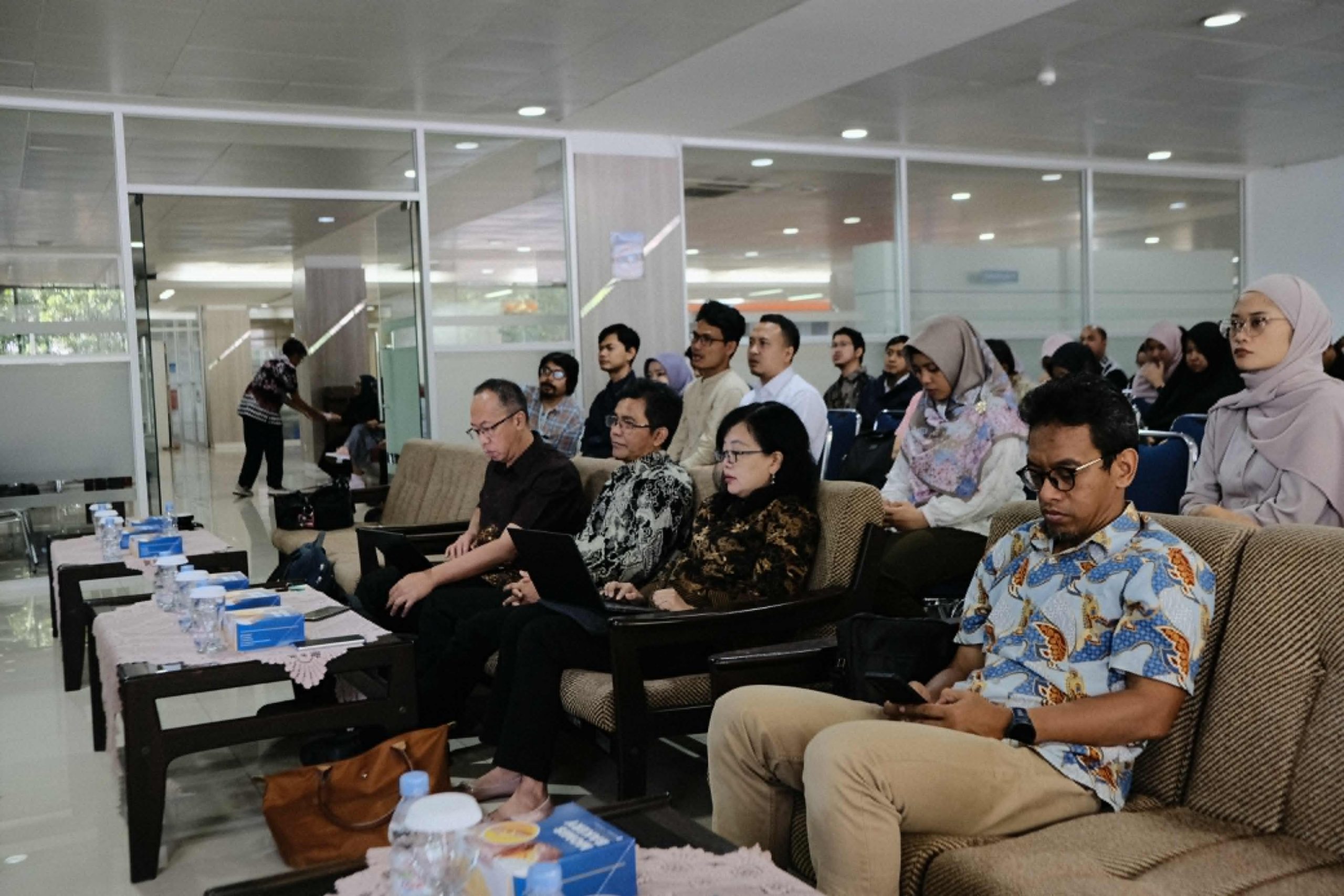 Lebih lanjut, pemaparan tersebut juga mencakup penjelasan mengenai berbagai sumber elektronik seperti e-book, dan e-journal yang telah dilanggan oleh perpustakaan. Kepala Perpustakaan menyampaikan cara akses yang benar serta etika penelusuran informasi untuk mendukung kebutuhan akademik dan riset. Selain itu, beliau juga memperkenalkan federated search –Sumon-yang memungkinkan pencarian lintas sumber informasi sekaligus, layanan pinjam antarperpustakaan internasional berbasis elektronik, serta perangkat reference manager untuk membantu dalam pengelolaan referensi. Terakhir, Kepala Perpustakaan menyampaikan informasi mengenai sistem keamanan, tata tertib, dan fasilitas lain yang disediakan perpustakaan, seperti akses hotspot di seluruh lantai,