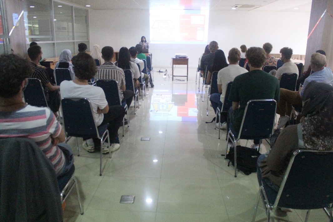 BANDUNG,lib.itb.ac.id – Orientasi Perpustakaan bagi Mahasiswa Baru Institut Teknologi Bandung (ITB) Program Internasional Tahun 2022 merupakan rangkaian orientasi terakhir yang dilaksanakan oleh UPT Perpustakaan bekerja sama dengan Biro Kemitraan ITB setelah sebelumnya dilaksanakan orientasi perpustakaan bagi mahasiswa baru program sarjana dan pascasarjana secara daring. Orientasi mahasiswa baru program internasional ini diselenggarakan pada hari Senin, tanggal 15 Agustus 2022 pukul 13.20 – 14.30 WIB secara hybrid (luring dan daring melalui aplikasi zoom) diikuti oleh kurang lebih 40 mahasiswa baru. Kedatangan mahasiswa baru program internasional ke UPT Perpustakaan dengan didampingi staf Biro Kemitraan ITB disambut oleh Kepala UPT Perpustakaan ITB, Ena Sukmana, S.Sos, dan Kepala Bidang Layanan Pemustaka dan Literasi Ilmiah, Yoka Adam Nugrahaa, S.Sos beserta staf Bidang Layanan Pemustaka dan Literasi Ilmiah di Ruang Pelatihan, Lantai 1, UPT Perpustakaan.