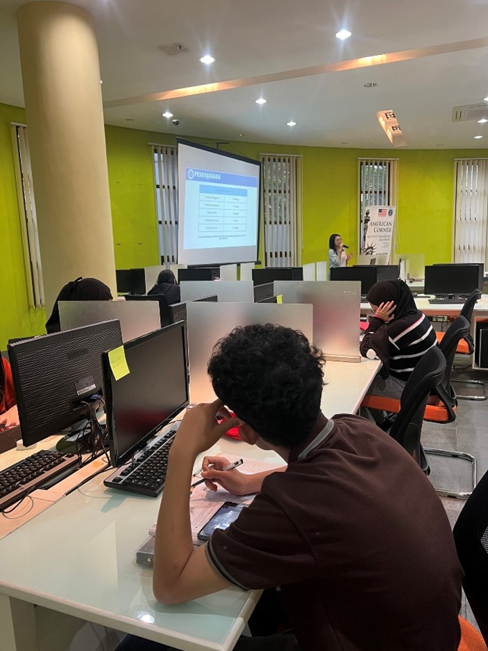 Kegiatan dilanjutkan dengan agenda utama, yaitu sesi paparan. Paparan disampaikan oleh dua pemateri: Siti Sarah Nurbaity, S.Sos (Kepala Bidang Operasional dan Layanan teknis) dan Dwina Fatimiyah Shiddiq, M.I Kom (Direktur American Corner). Dalam paparannya Siti Sarah Nurbaity, S.Sos menyampaikan hal-hal terkait layanan multikampus khususnya dalam tatacara/prosedur peminjaman mulai dari proses pemesanan koleksi cetak oleh mahasiswa melalui Webpac hingga koleksi diterima dan dikembalikan. Sementara itu, pemateri kedua, Dwina Fatimiyah Shiddiq, M.Ikom menyampaikan materi terkait cara mengakses e-library USA dan memperkenalkan konten-konten yang ada di dalamnya. Setelah sesi paparan, para peserta diberi kesempatan untuk melakukan tanya jawab.