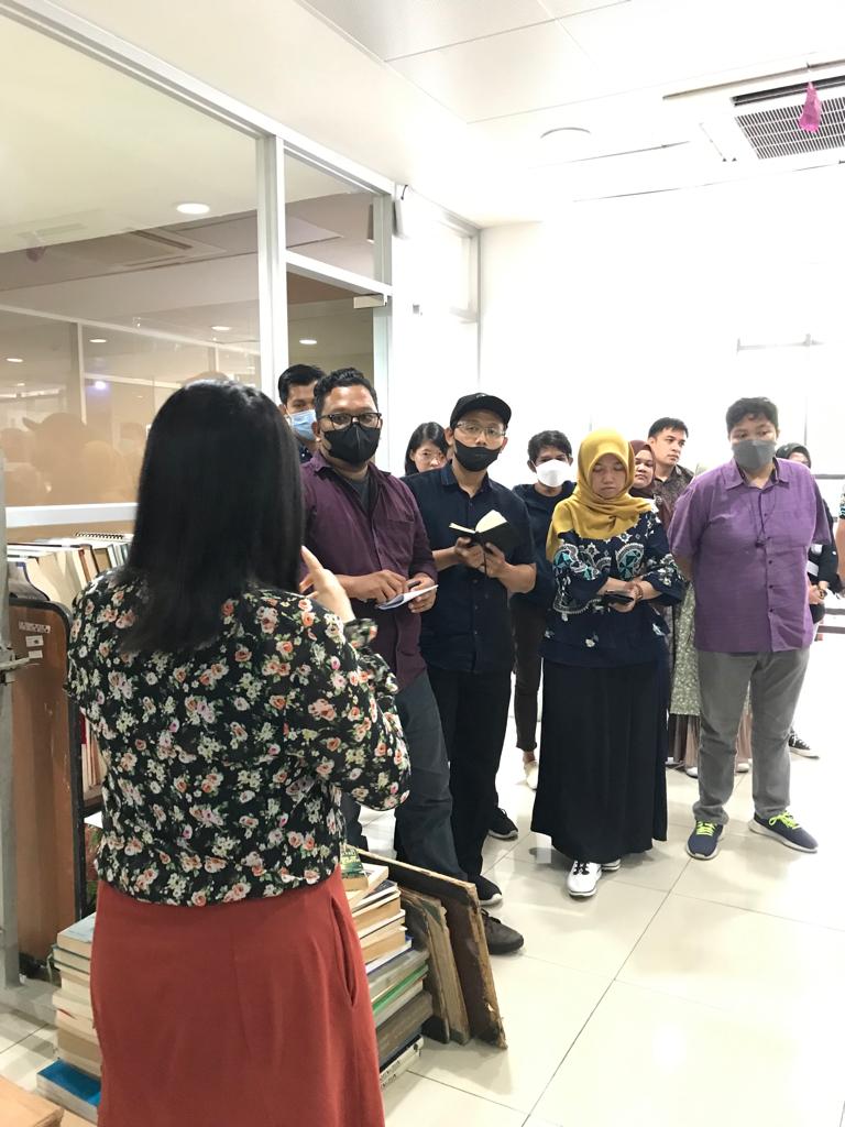 BANDUNG, lib.itb.ac.id – Pada Hari Senin tanggal 17 Oktober 2022 pukul 10.00 s.d. 12.30 WIB, UPT Perpustakaan telah menerima kunjungan secara langsung dari 22 orang dosen magang Kemendikbudristekdikti dari berbagai perguruan tinggi di Indonesia. Kunjungan tersebut disambut oleh Kepala UPT Perpustakaan, Ena Sukmana, S.Sos., dan Kepala Layanan Bidang Pemustaka dan Literasi Ilmiah, Yoka Adam Nugrahaa, S.Sos. Agenda pada kegiatan kunjungan tersebut dibagi menjadi 2 sesi, yaitu sesi penyambutan sekaligus tanya jawab di Ruang Rapat, UPT Perpustakaan ITB lantai 1, kemudian dilanjutkan dengan sesi tur perpustakaan yang dipandu oleh tim Bidang Layanan Pemustaka dan Literasi Ilmiah.
