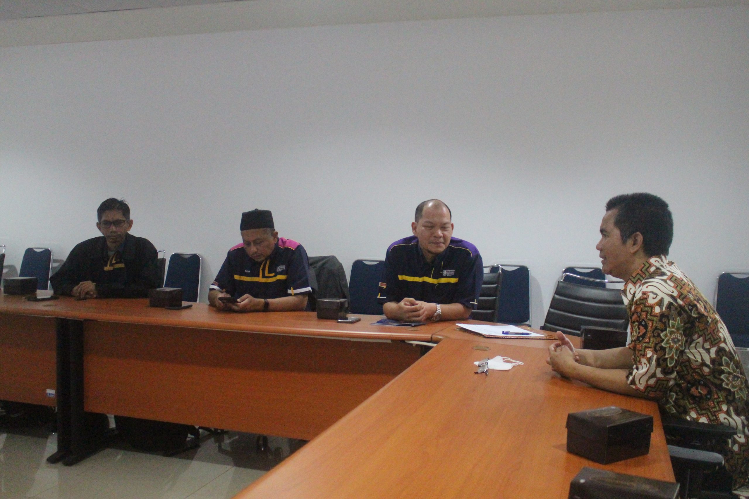 Tamu kunjungan diterima di Ruang Rapat UPT Perpustakaan ITB lantai 1 oleh Kepala Perpustakaan, Ena Sukmana, S.Sos., didampingi oleh Yoka Adam Nugrahaa, S.Sos. (Kepala Bidang Layanan Pemustaka dan Literasi Ilmiah), Siti Sarah Nurbaity, S.Sos. (Kepala Bidang Operasional dan Layanan Teknis), Moch. Arif Trikanda, S.Si. (Kepala Bidang Layanan Teknologi Informasi), dan Dwina Fatimiyah Shidiq, M.I.Kom. (Koordinator Humas dan Kerja Sama UPT Perpustakaan).