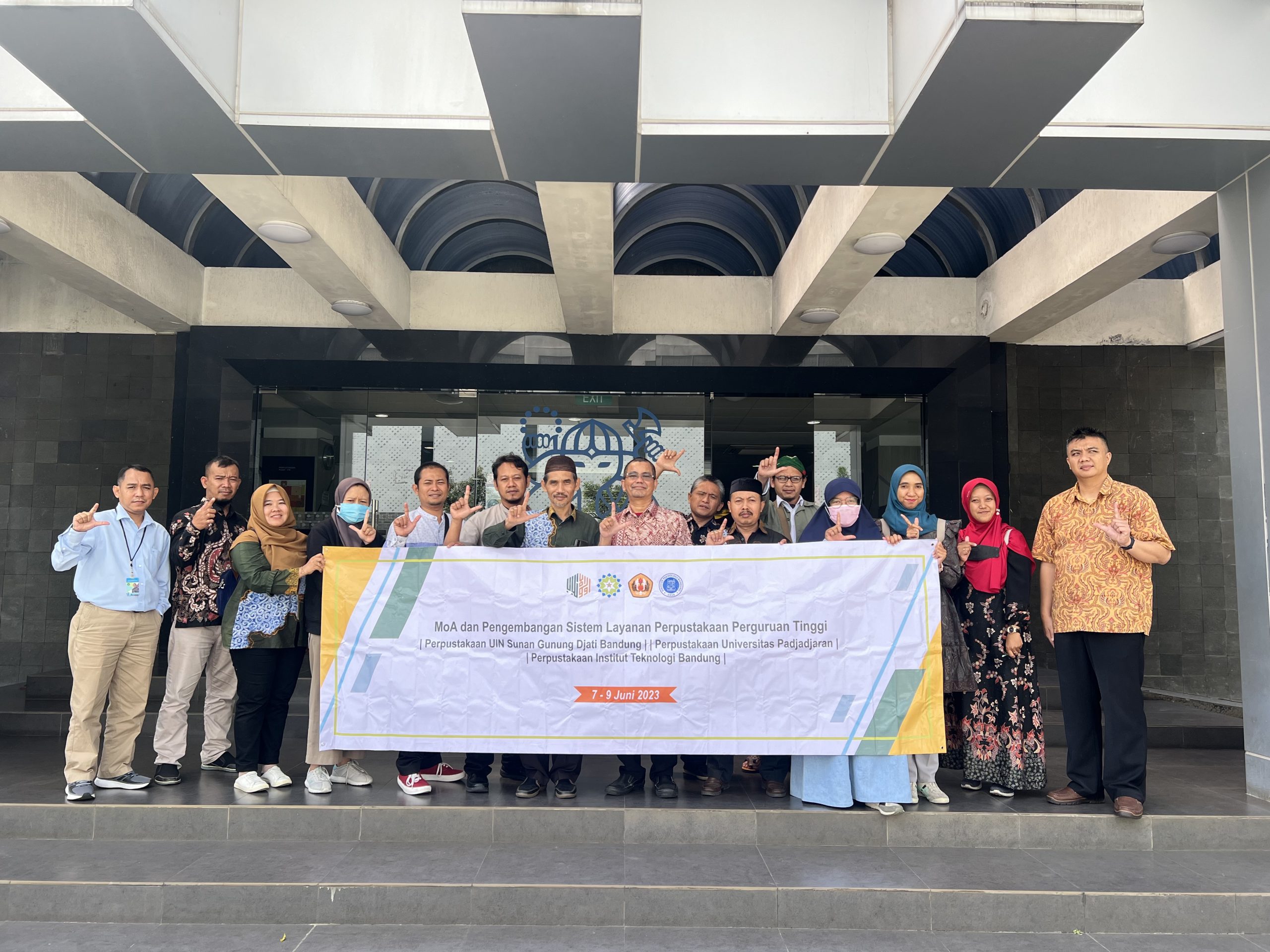 Bandung, lib.itb.ac.id – Pada Hari Jumat, tanggal 9 Juni 2023 pukul 08.30 WIB, UPT Perpustakaan menerima kunjungan dari Perpustakaan UIN Maulana Malik Ibrahim Malang. Kunjungan dipimpin oleh Kepala Perpustakaan UIN Maulana Malik Ibrahim Malang, dan didampingi oleh tiga belas staf lainnya. Tujuan kunjungan tersebut adalah untuk mengadakan perjanjian kerjasama dalam peningkatan sumber daya manusia dan resource sharing.