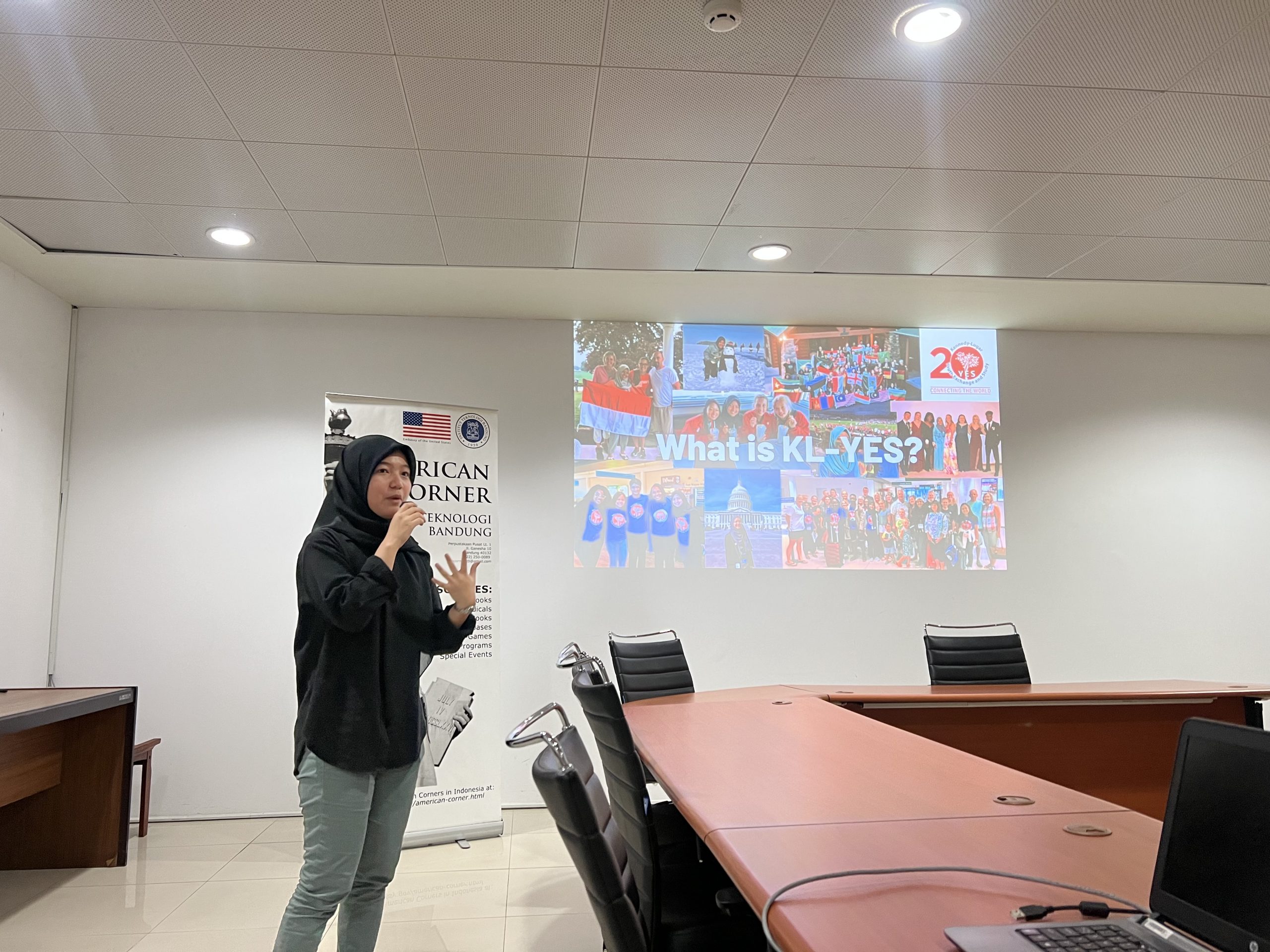 Kegiatan seminar diikuti dengan kegiatan sharing session secara luring dengan menghadirkan alumni dari Amerika, yaitu Afifah Pandandini, Youth Exchange and Study (YES) Program Alumni yang saat ini merupakan mahasiswa Sekolah Bisnis dan Manajemen ITB.