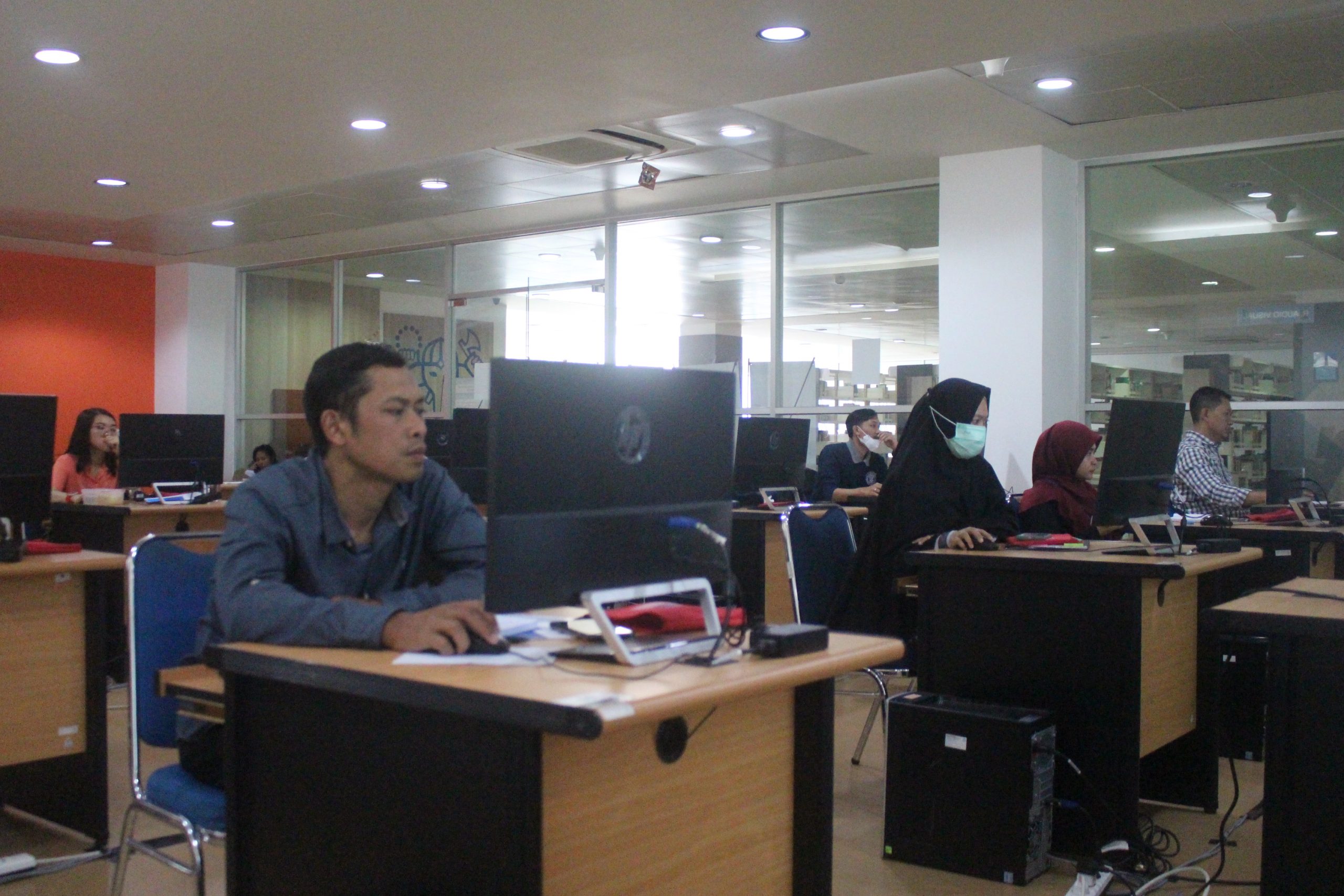 Setelah dibuka dengan sambutan, workshop dimulai oleh pembicara yaitu Marcy Carrel. Marcy Carrel mengenalkan terkait eLibraryUSA yang merupakan kumpulan digital sumber informasi tepercaya dari Amerika Serikat berupa surat kabar, majalah, jurnal, buku, disertasi, dan film serta video yang berkualitas.