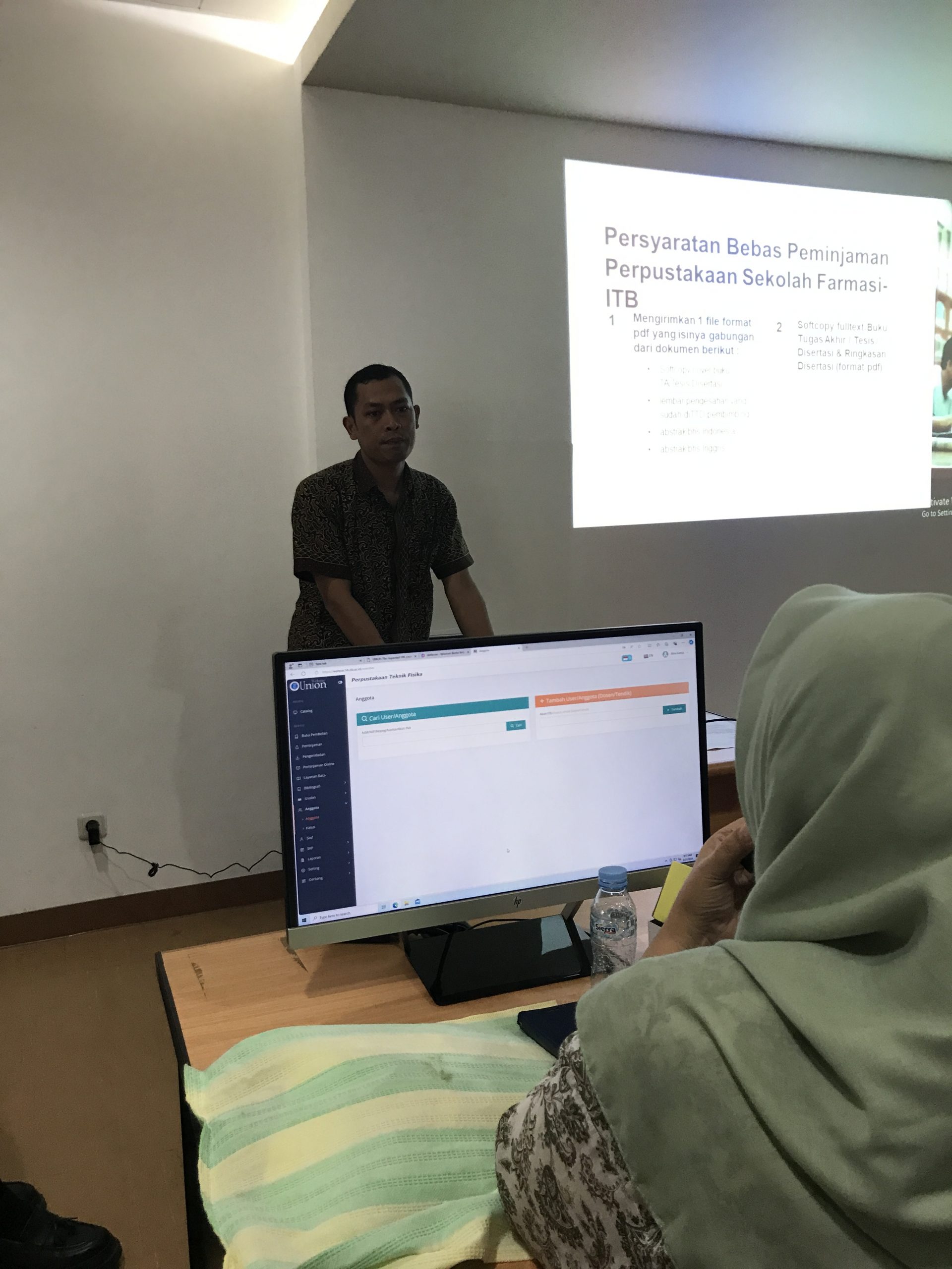 Sesi pertama mengenai Layanan Sirkulasi di UPT Perpustakaan ITB menarik pehatian bagi para peserta, tidak sedikit para pengelola perpustakaan bertanya terkait masalah denda di peprustakaan, syarat wisuda/FRS, dan juga terkait efektivitas fasilitas layanan pinjam online yang tersedia hanya untuk dosen dan tenaga pendidikan ITB saja. Sesi selanjutnya yaitu terkait Alur Bebas Pinjam Perpustakaan Sekolah Farmasi-ITB untuk Calon Wisudawan, dimana Bapak Yana Mulyana, S.I.Pust selaku pengelola perpustakaan Sekolah Farmasi memberikan pengalamannya dalam mengelola perpustakaan khususnya dibagian Alur Bebas Pinjam untuk Calon Wisudawan. Ada beberapa masukan dan pertanyaan terkait hal tersebut, diantaranya masukan mengenai olah data hasil karya ilmiah yang akan diunggah di digilib sebagai syarat wisuda serta terkait Informasi hasil pengolahan olah data/ alih media dari hasil karya mahasiswa.