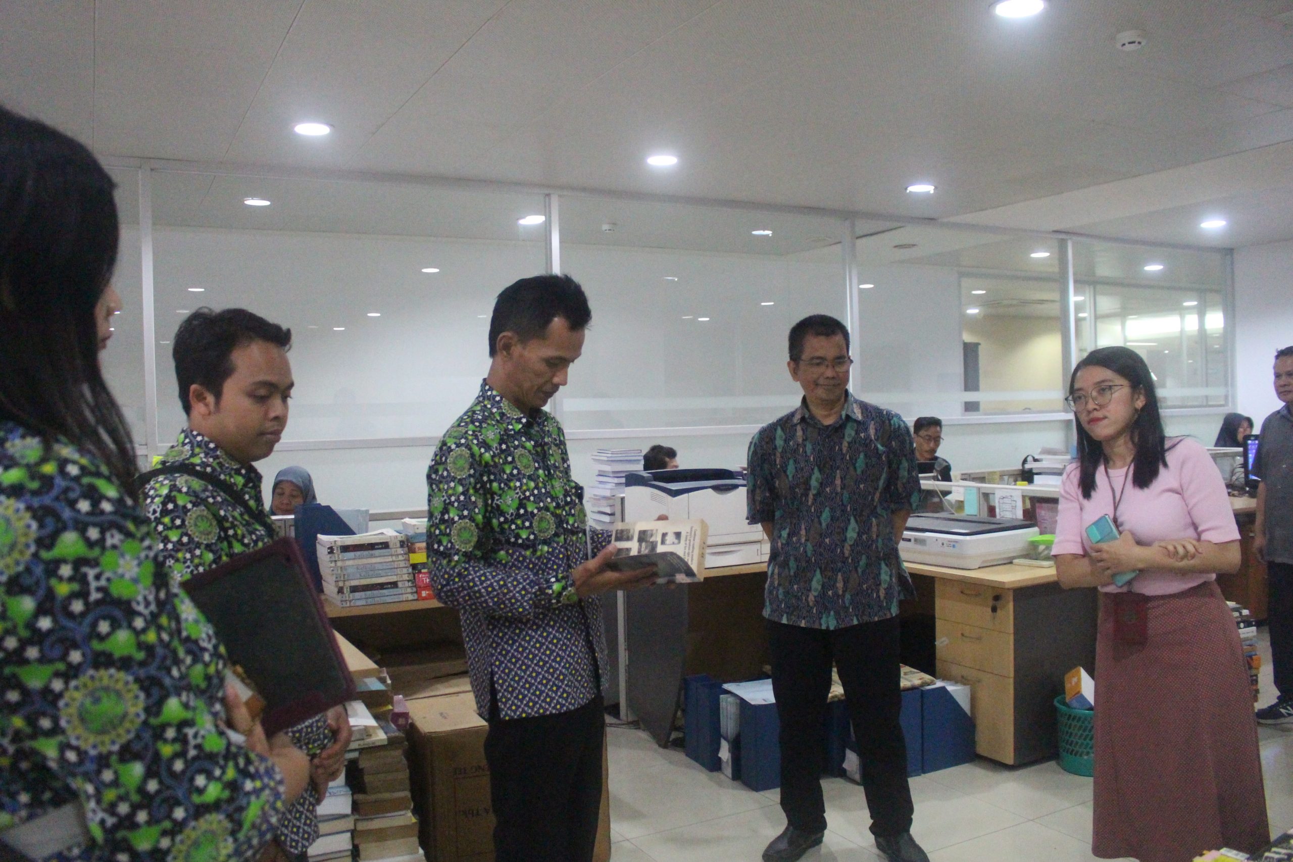 Kegiatan penerimaan kunjungan diadakan di Ruang Rapat dan dihadiri oleh Kepala UPT Perpustakaan ITB, Ena Sukmana, S.Sos, Kepala Bidang Layanan Pemustaka dan Literasi Ilmiah, Bapak Yoka Adam Nugrahaa, S.Sos., dan Koordinator Layanan American Corner dan Humas, Dwina Fatimiyah Shidiq, M.I.Kom. Serta Koordinator Layanan Repositori, Konten Digital dan Multimedia, Ibu Alice Diniarti, M.I.Kom.