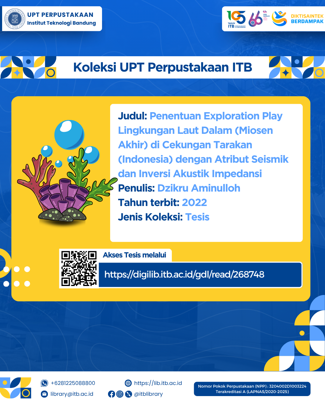 Sebagai bentuk kontribusi dalam bidang ilmu pengetahuan kelautan, kami menghadirkan koleksi tesis berjudul “Penentuan Exploration Play Lingkungan Laut Dalam (Miosen Akhir) di Cekungan Tarakan (Indonesia) dengan Atribut Seismik dan Inversi Akustik Impedansi” karya Dzikru Aminulloh (2022).