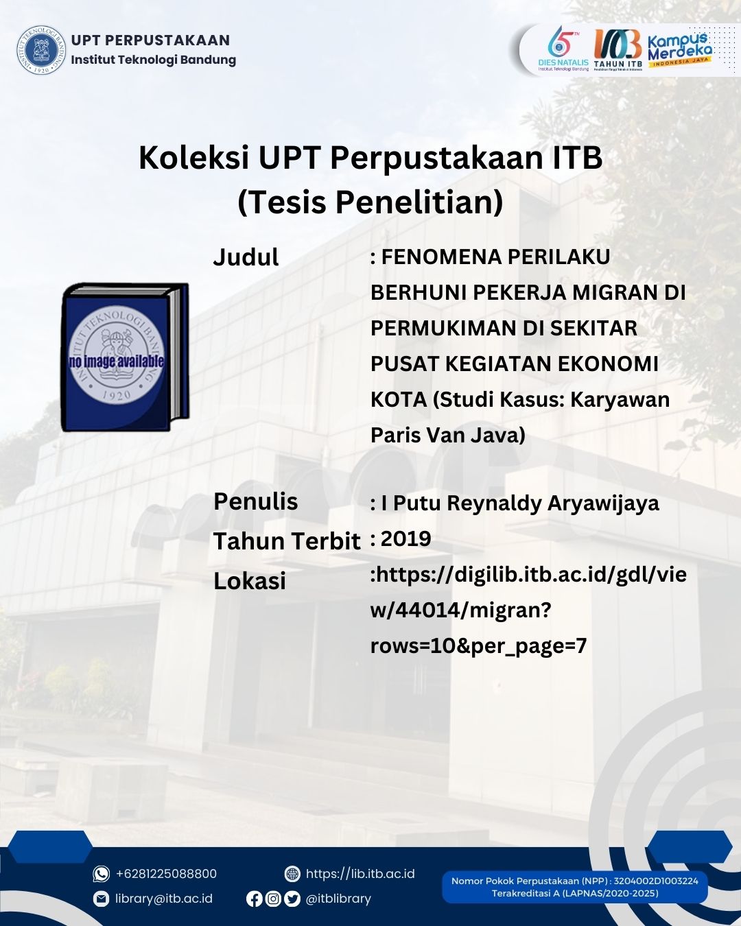 Pustaka kami menyimpan banyak koleksi literasi terkait Migran, salah satunya yaitu Tesis, berjudul “FENOMENA PERILAKU BERHUNI PEKERJA MIGRAN DI PERMUKIMAN DI SEKITAR PUSAT KEGIATAN EKONOMI KOTA (Studi Kasus: Karyawan Paris Van Java)”.