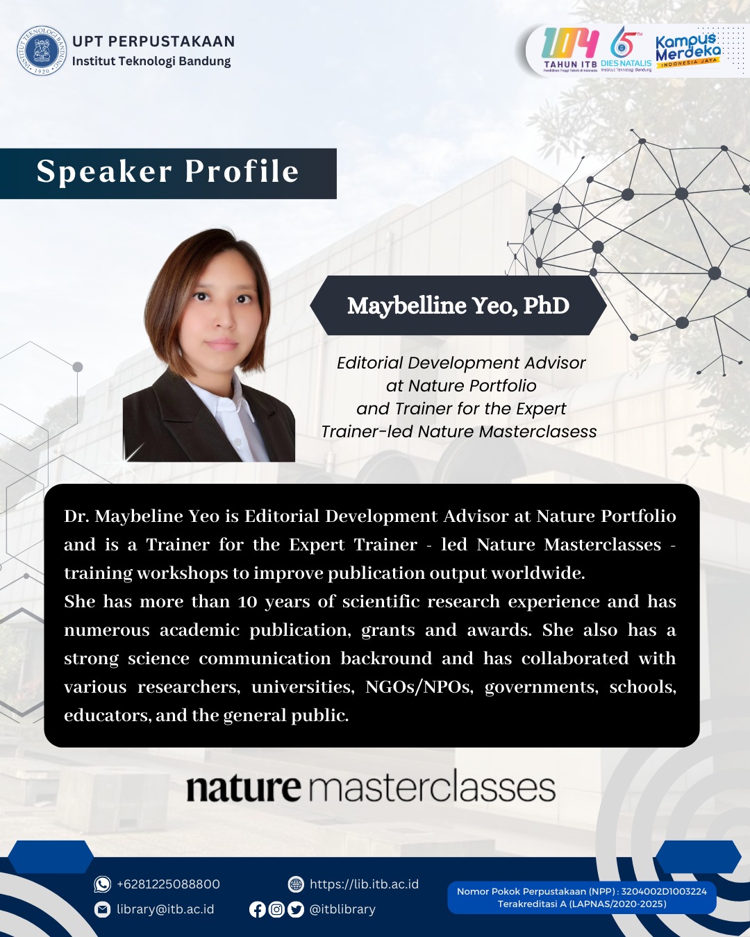 - Pemateri: Maybelline Yeo, PhD (Editorial Development Advisor at Nature Portfolio)