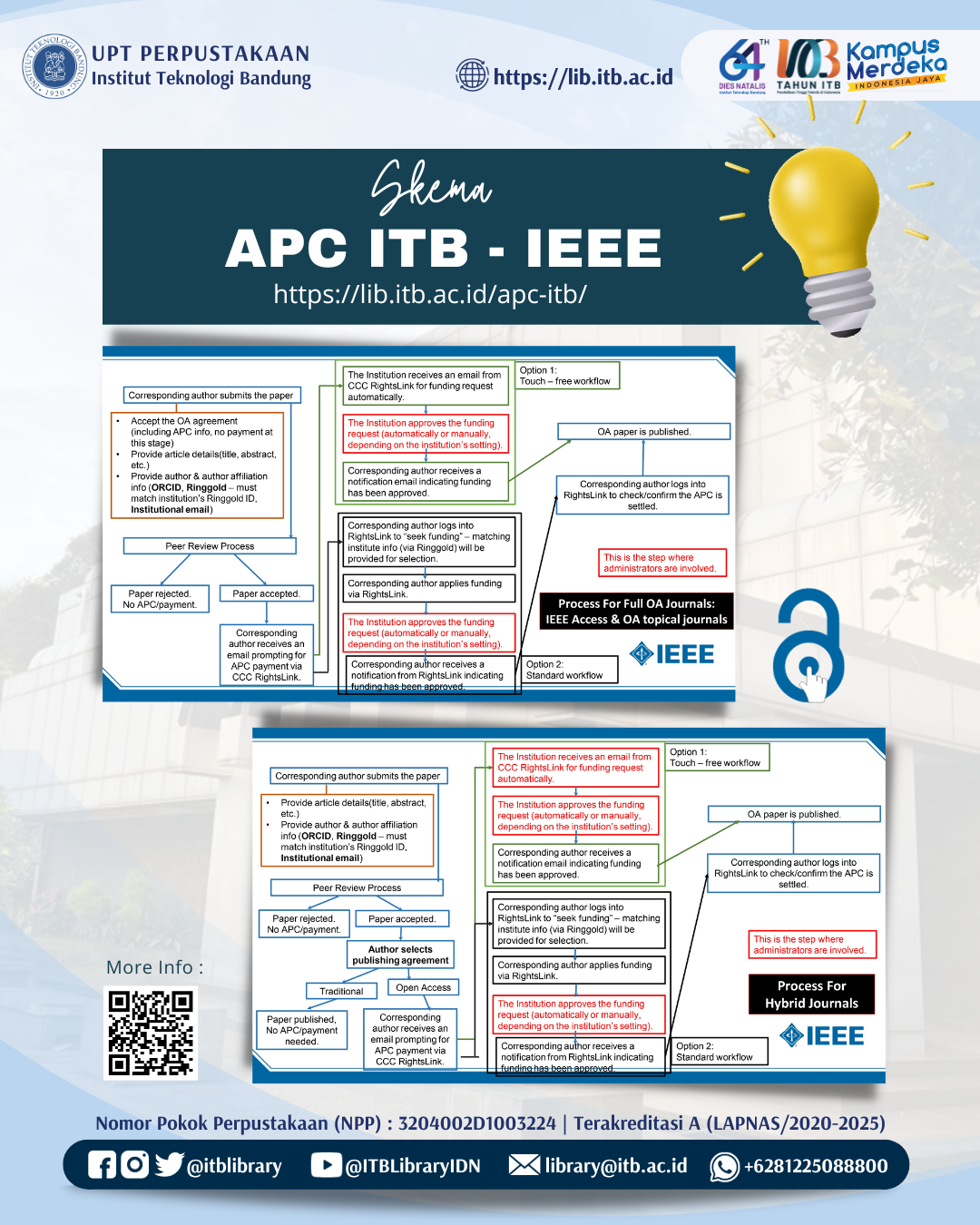 UPT Perpustakaan ITB bekerjasama dengan Lembaga Penelitian dan Pengabdian kepada Masyarakat (LPPM) dan Institute of Electrical and Electronics Engineers (IEEE) menyelenggarakan program Article Processing Charge (APC) untuk sivitas akademika ITB.