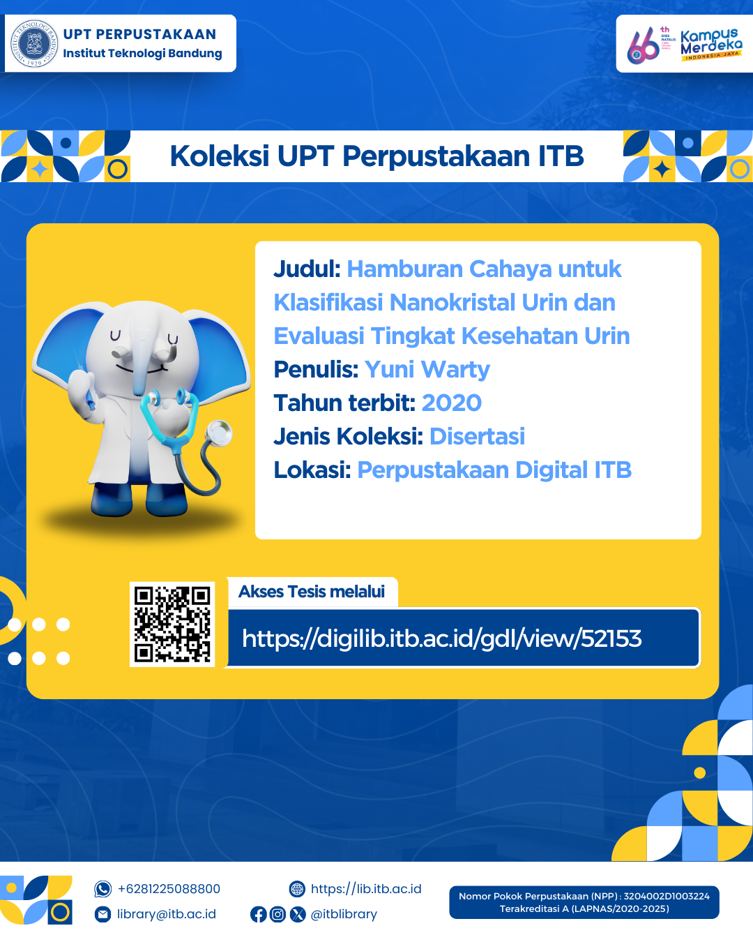 Perpustakaan Digital ITB menyediakan berbagai koleksi yang mendukung penelitian dan pemahaman tentang kesehatan, termasuk disertasi : Hamburan Cahaya untuk Klasifikasi Nanokristal Urin dan Evaluasi Tingkat Kesehatan Urin karya Yuni Warty (2020).