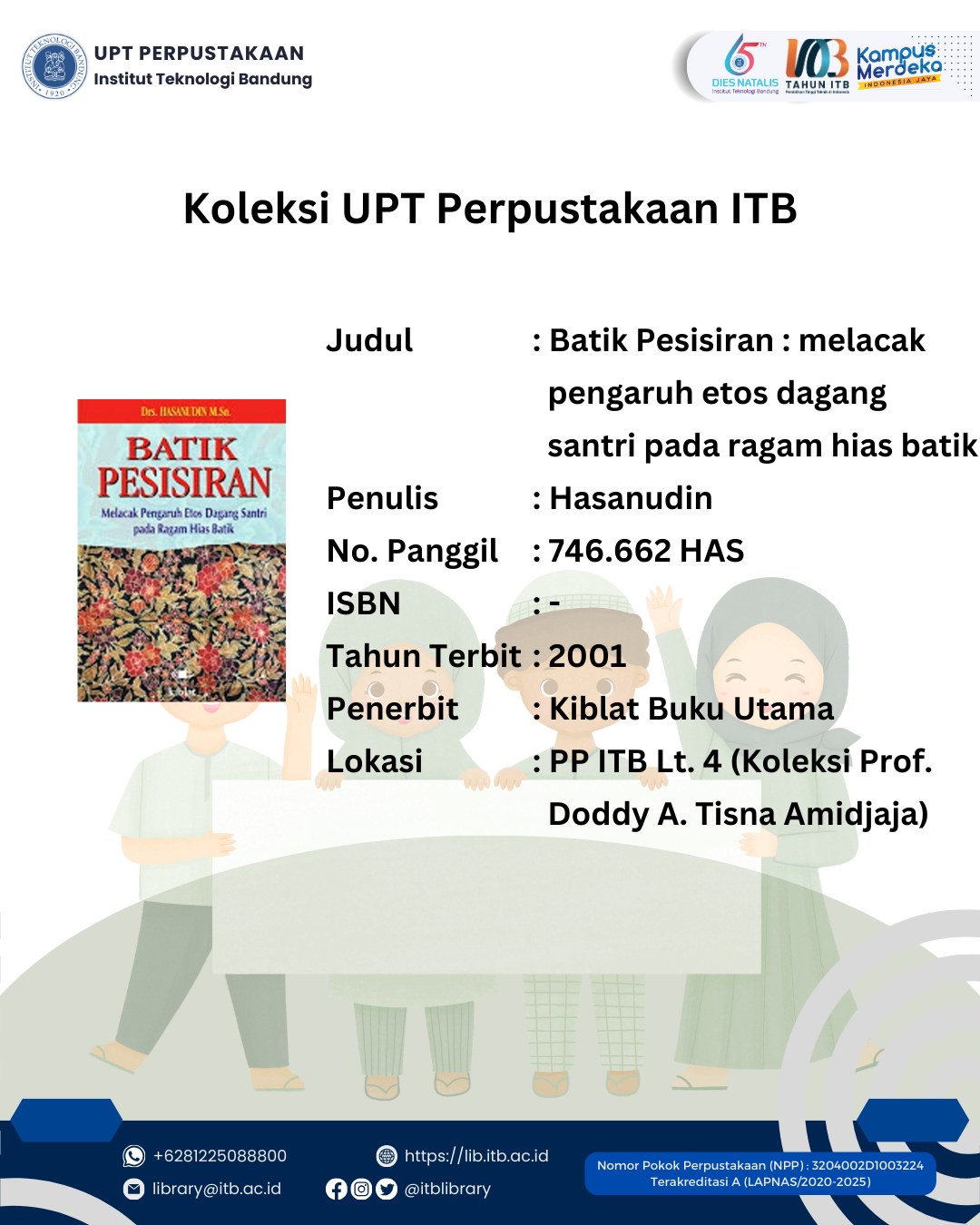 Hari ini, kita memperingati peran besar santri dalam sejarah perjuangan bangsa dan dalam berbagai aspek kehidupan, termasuk dalam seni dan budaya. Salah satu karya yang menarik untuk ditelusuri adalah buku ‘Batik Pesisiran: Melacak Pengaruh Etos Dagang Santri pada Ragam Hias Batik’, yang tersedia di Perpustakaan ITB.