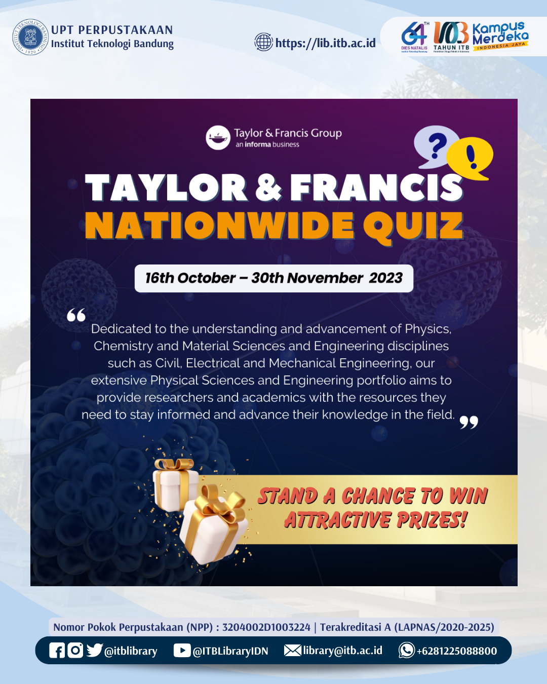 This quiz would be relevant for students and even librarians to explore Taylor and Francis resources. Participants with top scores will stand a chance to win attractive prizes!
