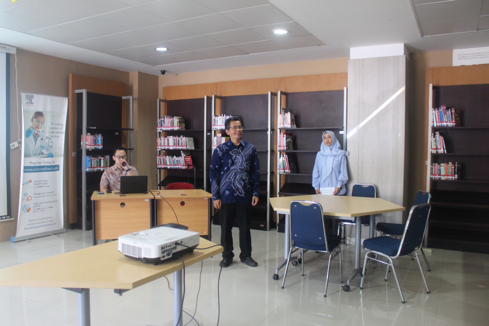 Pada sesi inti, Mr. Johan Jang sebagai narasumber utama memaparkan berbagai fitur unggulan dari Scopus dan ScienceDirect yang dapat mendukung pencarian referensi penelitian secara lebih efektif dan efisien. Beliau menjelaskan bagaimana kedua platform tersebut menawarkan kemudahan dalam mengakses jurnal-jurnal ilmiah berkualitas tinggi serta artikel penelitian yang relevan untuk berbagai bidang studi. Selain itu, dalam rangka perayaan ulang tahun Elsevier yang ke-25, Mr. Johan Jang juga memperkenalkan proyek ScienceDirect-AI, sebuah inisiatif baru yang dirancang untuk mempermudah pengguna dalam mencari informasi dengan dukungan kecerdasan buatan, serta memberikan referensi yang lebih jelas dan akurat sesuai kebutuhan penelitian pengguna.