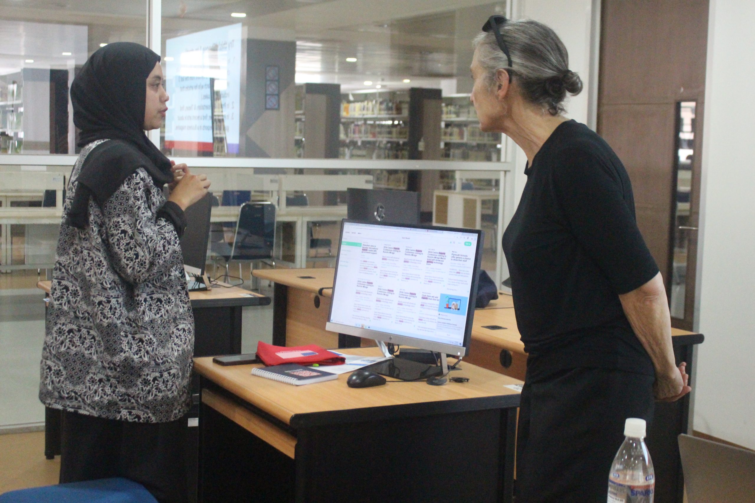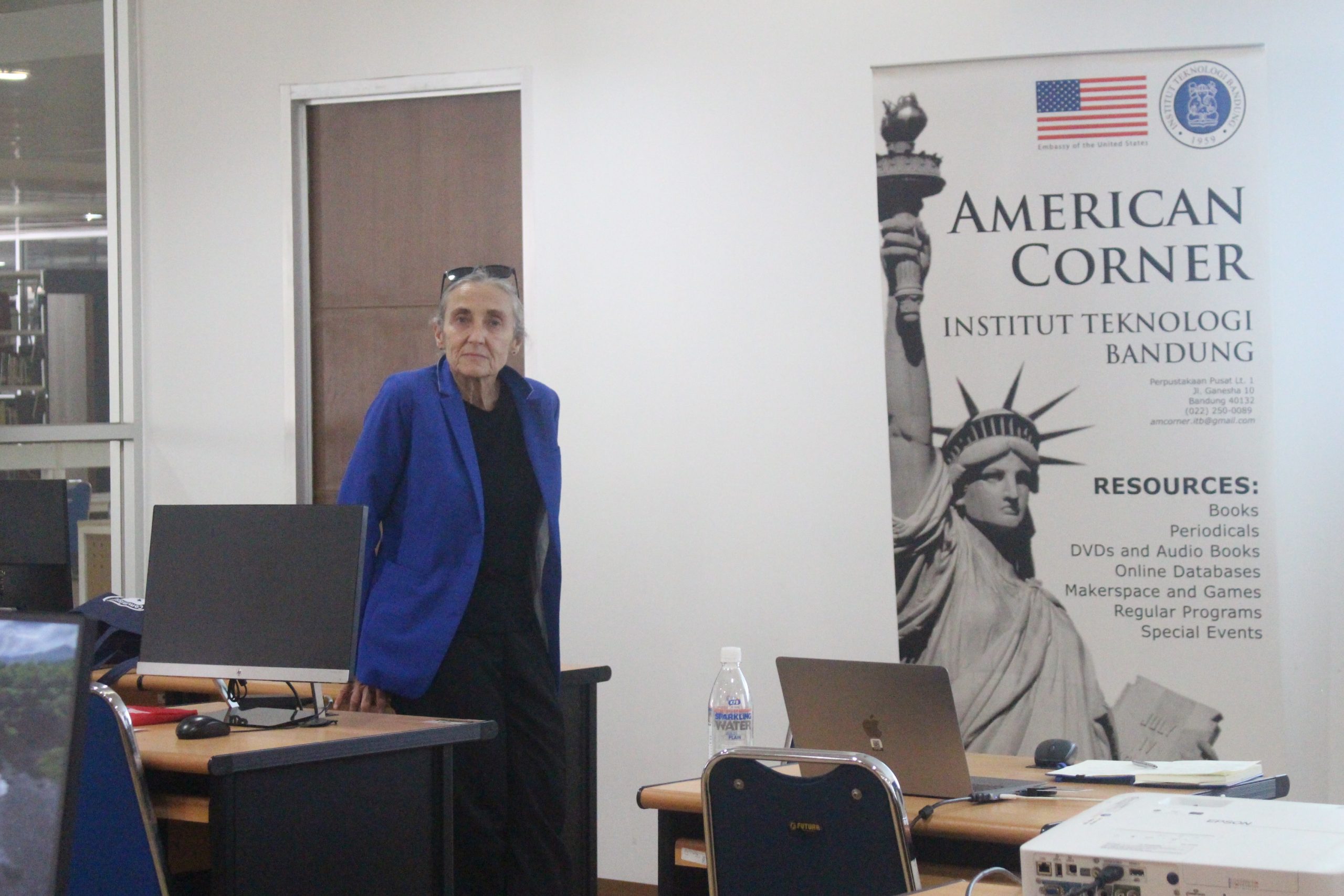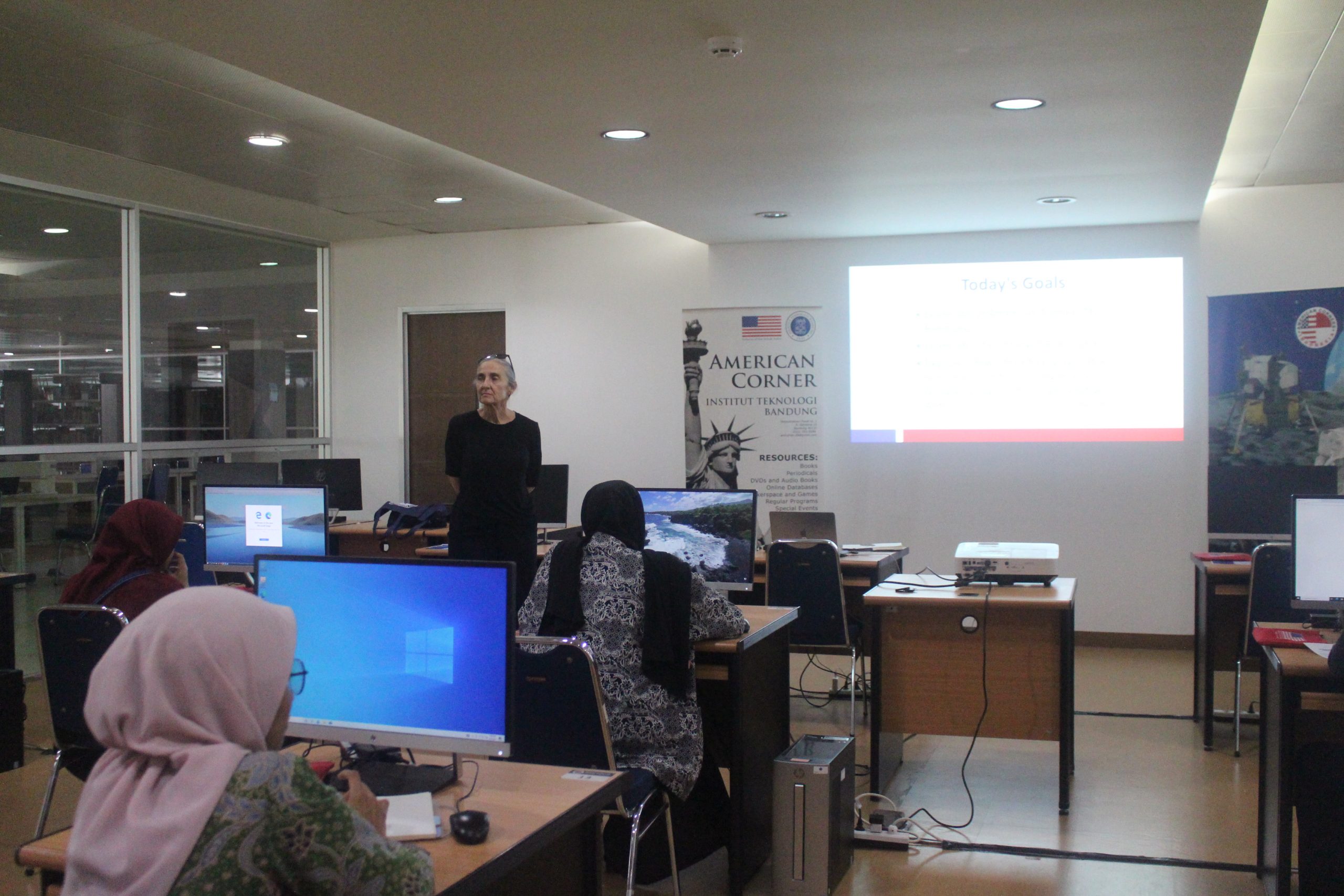 Bandung, lib.itb.ac.id. Pada Hari Senin, tanggal 24 Juli 2023 pukul 14.00 s.d. 16.00 WIB, American Corner Institut Teknologi Bandung mengadakan kegiatan Workshop on Research Skill terkait “eLibraryUSA”. Sebanyak 16 partisipan yang merupakan pustakawan atau pengelola perpustakaan di lingkungan ITB menghadiri kegiatan workshop yang bertempat di Ruang Audio Visual, UPT Perpustakaan ITB lantai 4. Pembicara pada kegiatan workshop kali ini Marcy Carrel yang merupakan Regional Public Engagement Specialist (REPS) untuk Indonesia, Malaysia, Philippines, dan Timor Leste – berbasis di Kedutaan Besar AS di Jakarta. Kegiatan dibawakan oleh Dwina Fatimiyah Shidiq, M.I.Kom. yang merupakan Direktur Amerikan Corner ITB, dihadiri dan dibuka oleh Yoka Adam Nugrahaa, S.Sos. sebagai Kepala Bidang Layanan Pemustaka dan Literasi Ilmiah, dikarenakan Ena Sukmana, S.Sos. selaku kepala UPT Perpustakaan ITB tidak dapat hadir dalam membuka acara workshop tersebut.